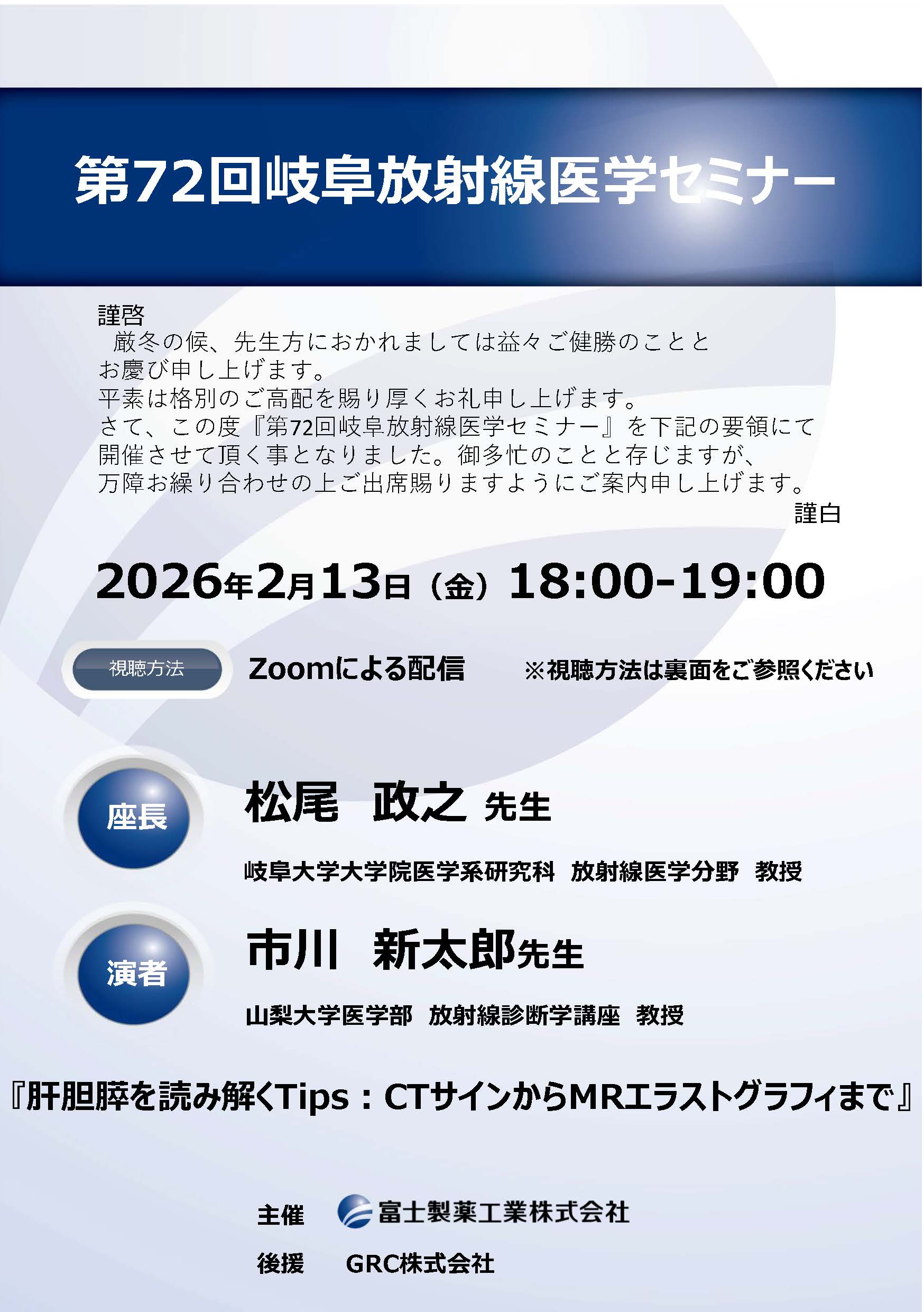 〈予告〉【第72回岐阜放射線医学セミナー】にて市川教授が講演