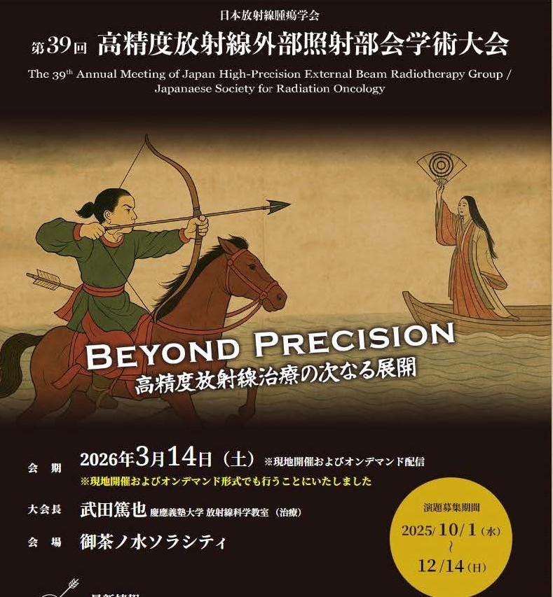 来る3月24日(土)、お茶の水ソラシティーにて【第39回高精度放射線外部照射部会学術大会】が開催され、放射線治療学講座の松田正樹先生が発表を行います。