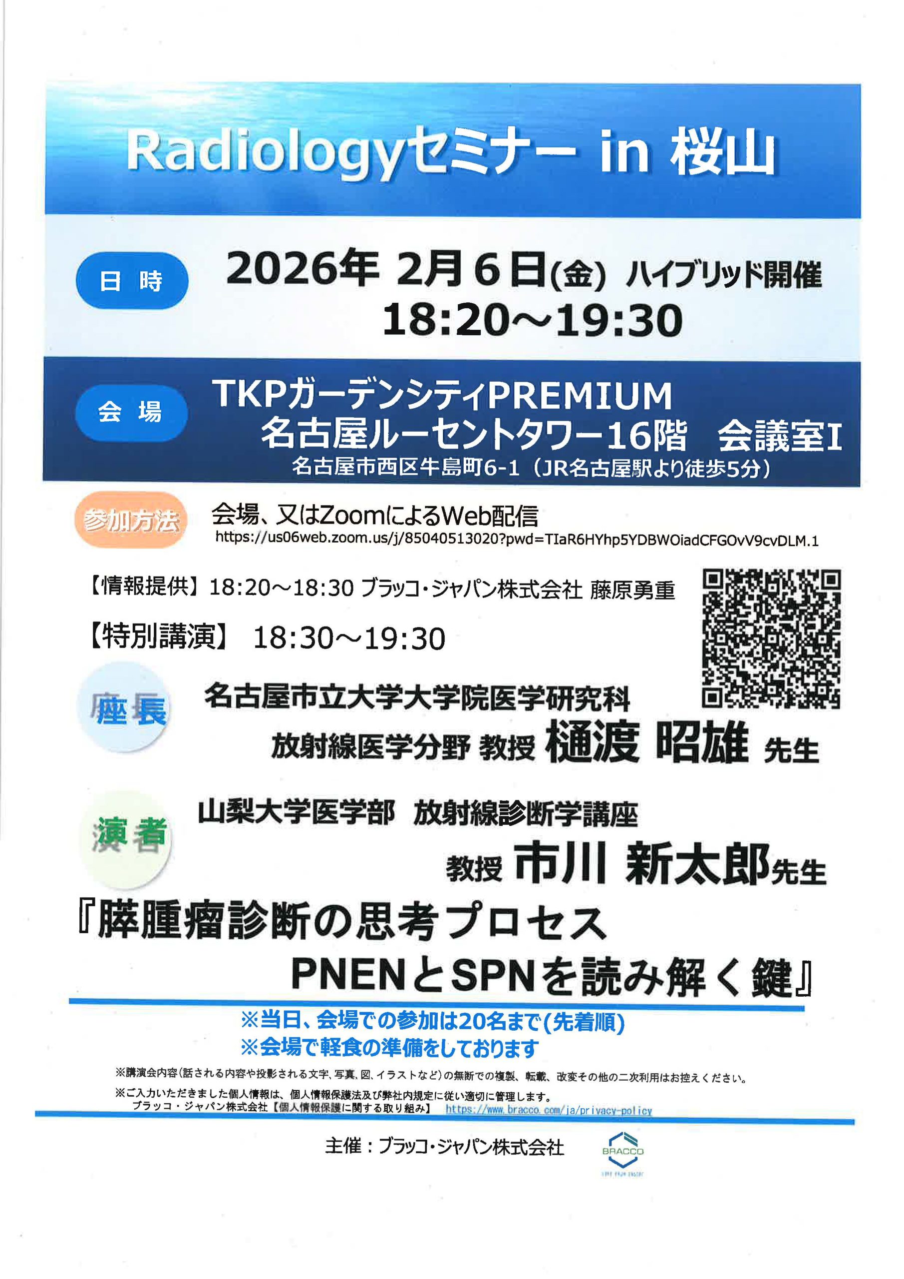 来る2月6日(金)18:20~19:30、会場、又はZoomによるWeb講演会が開催され、放射線診断学